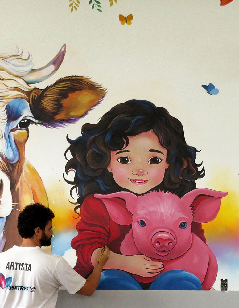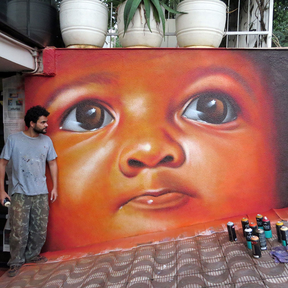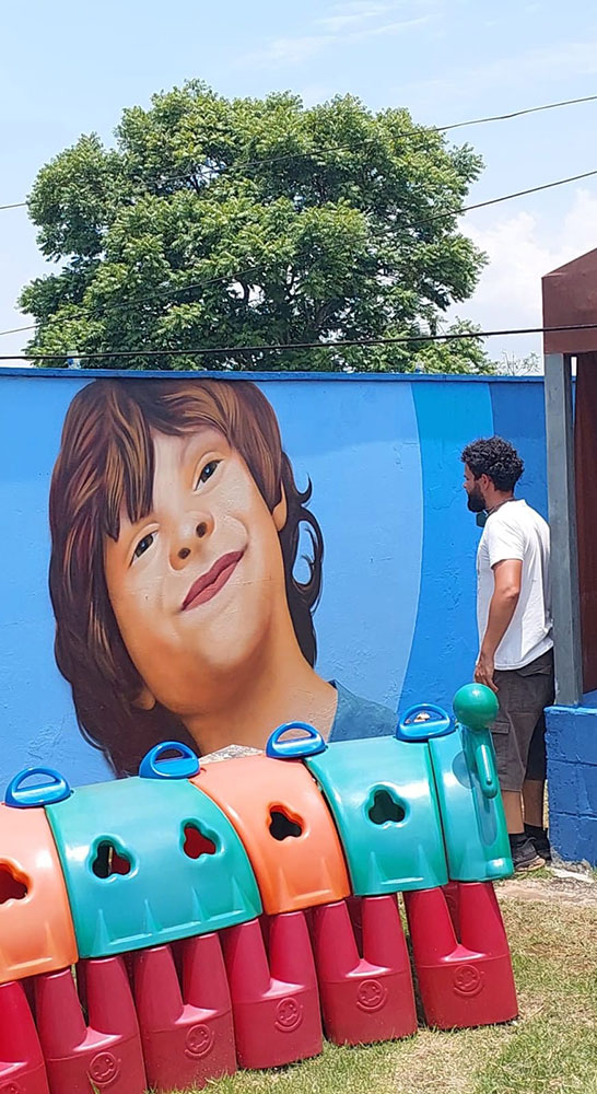 Denis Pinho, artista visual autodidata e educador em São Bernardo do Campo. Ex-metalúrgico, encontrou na arte de rua e na pintura, de modo geral, um caminho para transformar a estética urbana, contar histórias e trazer reflexões, unindo técnica, símbolos e diálogo com a comunidade.
