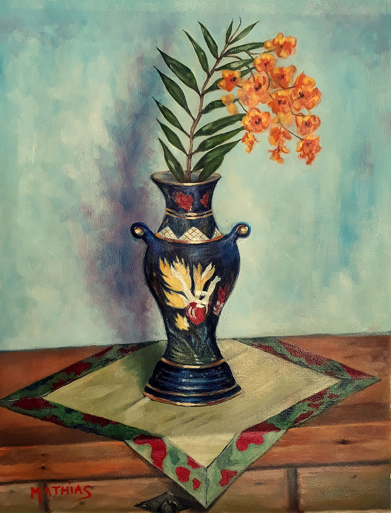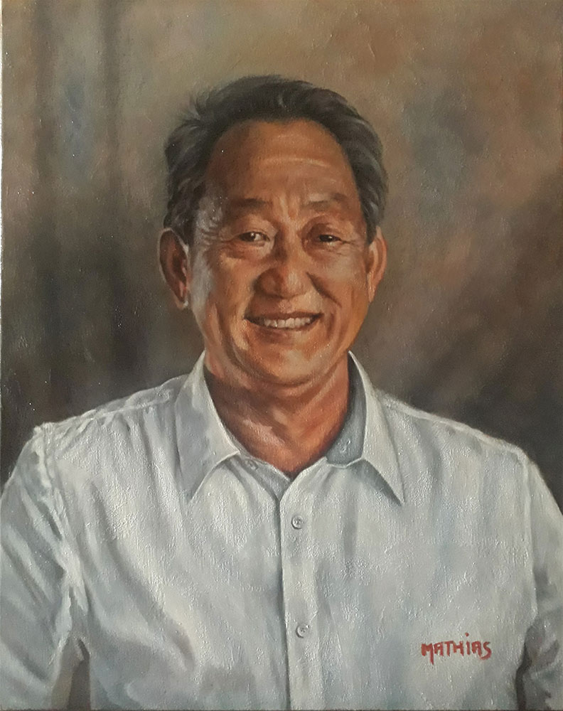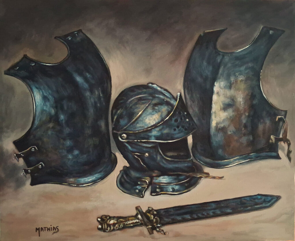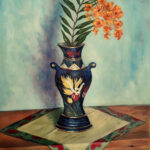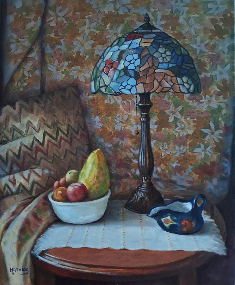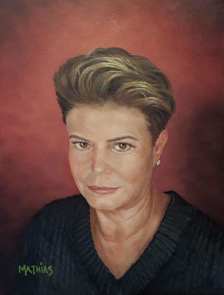 Pinta há muitos anos, teve aula com bons professores, sua temática é variada com um tratamento mais acadêmico, hoje faz retratos sob encomenda.
