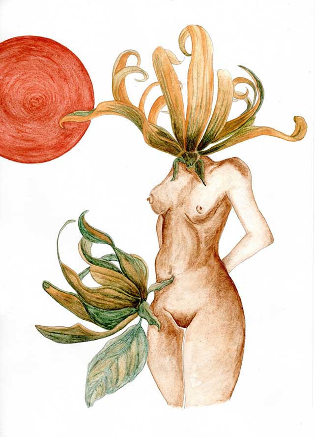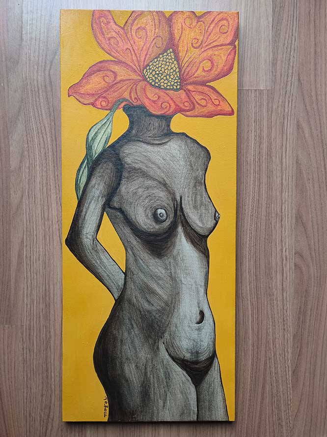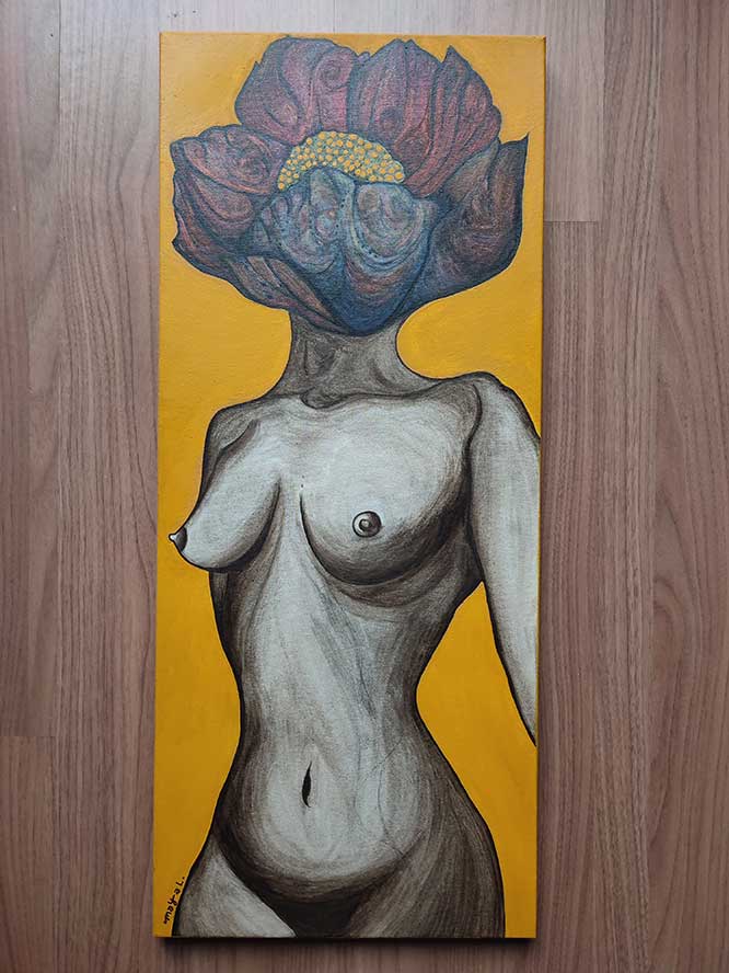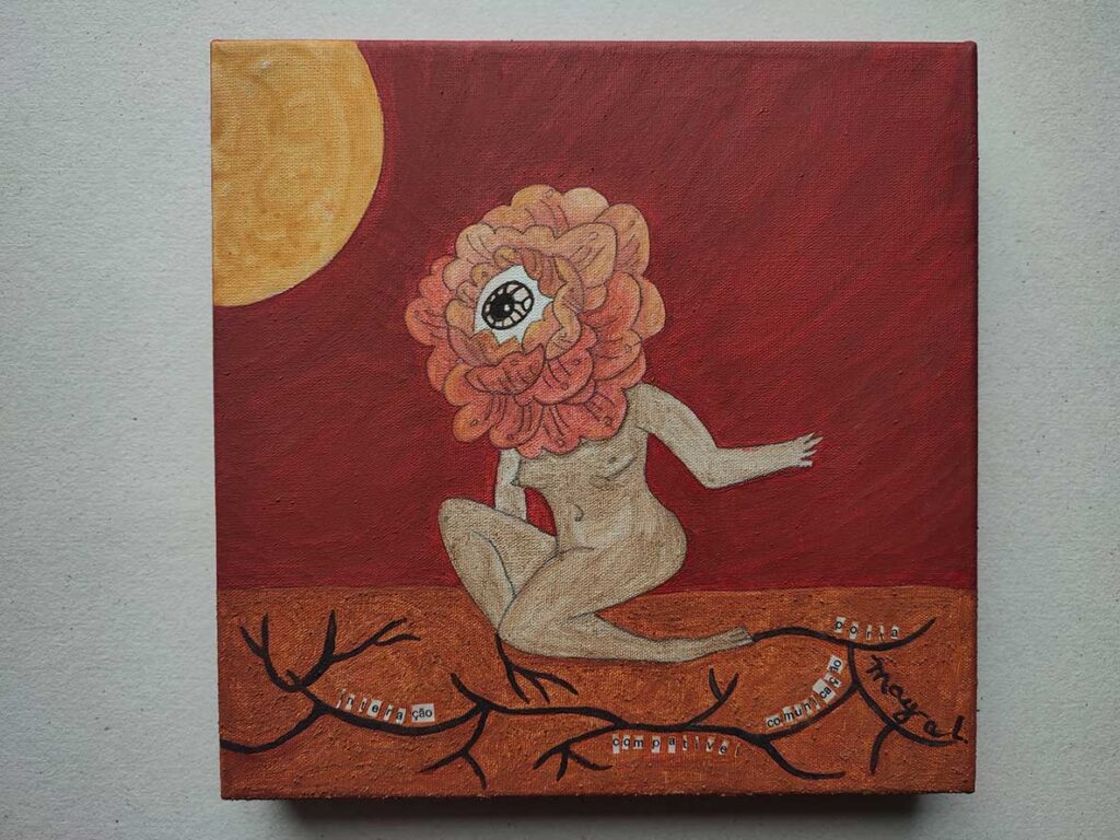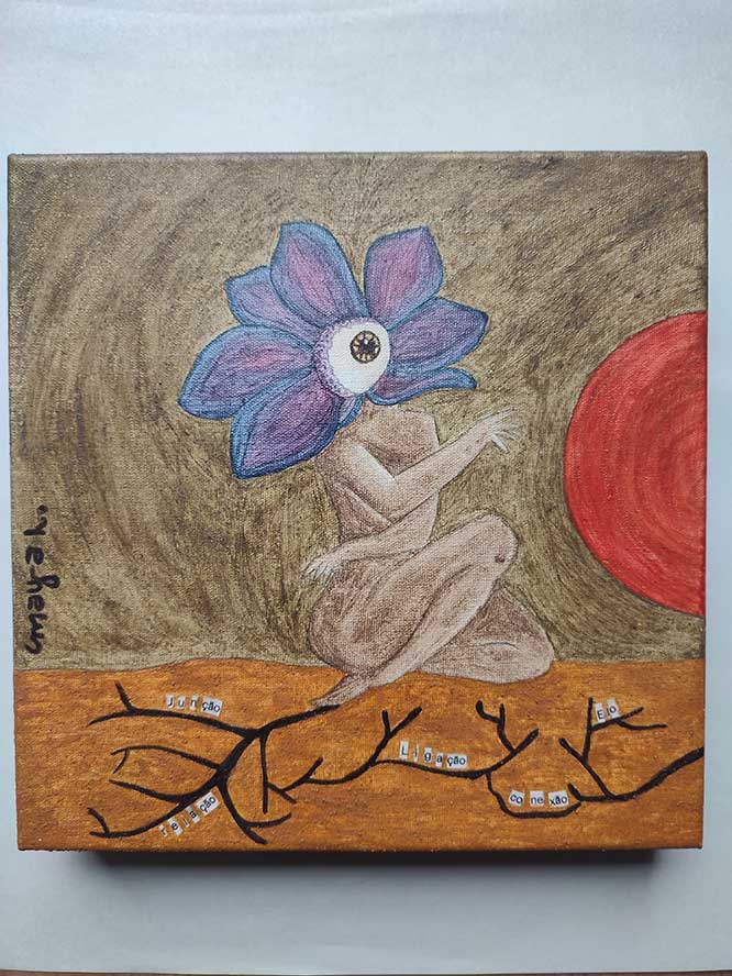 Mayra Lopes é artista visual, arte-educadora e pesquisadora de pigmentos naturais. Investiga a relação entre arte, natureza e espiritualidade. Suas obras transitam entre técnicas variadas como a pintura, colagem e poesia usando tintas feitas com elementos da natureza — como minerais e vegetais — em um processo que respeita e revela a potência dos ciclos naturais.