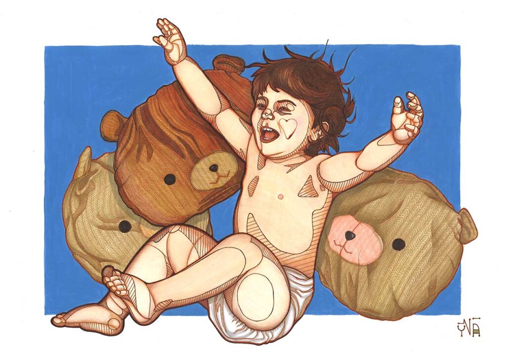 Sempre tive afeição pelas artes visuais, expus alguns desenhos no espaço ARTEQUIM – sindicato dos químicos de ABC em 2012, e a facilidade com desenhos me levou a graduação em arquitetura e urbanismo pela universidade São Judas Tadeu com minha formação em 2014. Desenhar faz parte do meu dia a dia, porém, a alguns anos eu havia abandonado o desenho artístico e me empenhado nos projetos técnicos do meu estúdio de arquitetura. Mas havia uma falta que precisava ser preenchida, e em 2024 reiniciei a trabalhar com desenhos artísticos, e me encontrei ao retratar os momentos significativos da minha filha. Crianças externam com facilidade os sentimentos e é fácil e bonito transportá-los para o papel. Meu novo nicho de trabalho permitiu expandir os serviço do ESTUDIO APO, criando esse nova frente, que carrega o nome YNÃ.